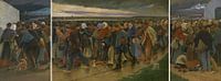 “De Landverhuizers” is een prachtig drieluik, geschilderd in een stijl die doet denken aan die van Bruegel.