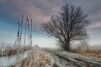 Een Landweg in Het bossche Broek in Den Bosch op een koude ochtend in maart, net na zonsopkomst