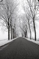 Landweg door een bevroren winters landschap in de IJsseldelta op de Zwartendijk nabij Kampen.