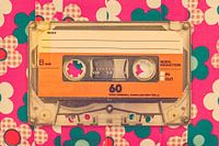 Vintage oranje muziekcassette op jaren zeventig bloemen achtergrond