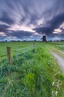 Zware wolkenlucht boven de Langelandstermolen, tussen Ten Boer en Garmerwolde in de provincie Groningen.
