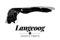 Langeoog - het vakantie-eiland voor de kust van Oost-Friesland als decoratief kaartontwerp. Minimalistisch Designkaart voor Langeoog-fans - het stijlvolle decoratie-idee, ook als cadeau.