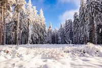 Langlaufen in het besneeuwde Thüringer Woud bij Floh-Seligenthal - Thüringen - Duitsland