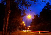 Deze foto is gemaakt op weg naar huis langs de A28 tijdens het zogenaamde blauwe kwartiertje. De rode strepen komen van een wegrijdende vrachtwagen.