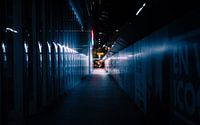 Een steeg tussen het Timmerhuis en de bouwplaats bij het Oude Postkantoor in het centrum van Rotterdam. Het licht dat op gevel van het Timmerhuis valt creëert een mooi patroon.