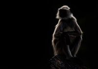 Silhouette van een Langur aap in India. Deze foto is genomen in het Kanha tiger reserve, India.