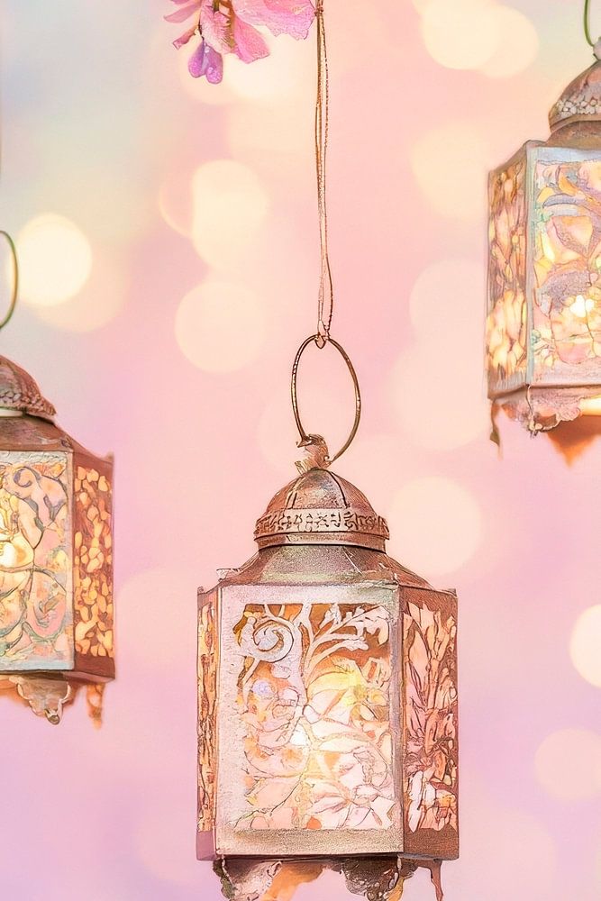 Delicate lichtspelingen dansen in de lucht, terwijl filigraan lantaarns aan tere takken bungelen. Hun glinsterende oppervlakken weerspiegelen zachte kleuren die een uitnodigende sfeer creëren. Perfect voor de slaapkamer, ze transformeren de kamer in een plek van ontspanning en dromerige uitzichten. Een vleugje magie voor vredige nachten.
