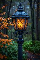 Verlicht uw ruimte met de betoverende gloed van deze digitale kunstprint. Een eenzame lantaarnpaal straalt warmte uit in een mistig bos, omringd door weelderig groen. De regendruppels op het glas voegen een vleugje magie toe, terwijl de gedempte kleuren een gevoel van rust en sereniteit oproepen. Perfect voor liefhebbers van sfeervolle kunst en degenen die de schoonheid van de natuur waarderen, zelfs in de meest mysterieuze omgevingen.