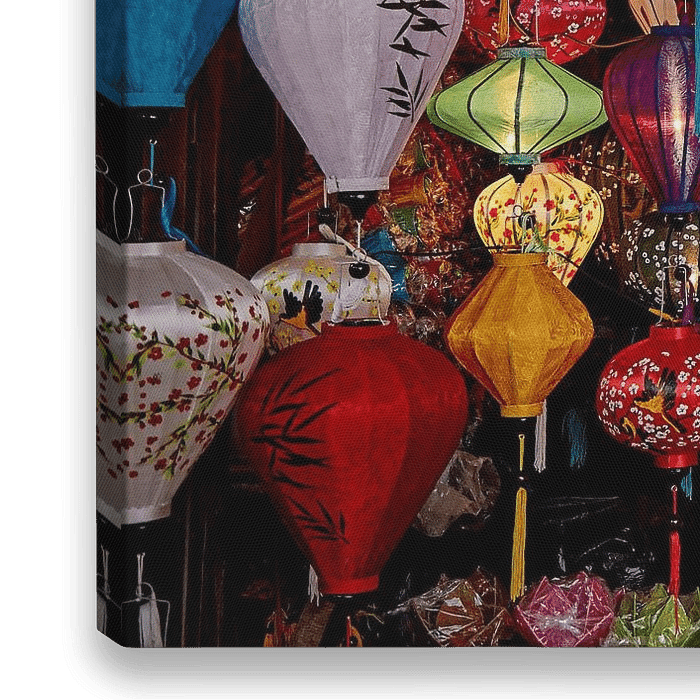 Lantaarns hangen klaar om te worden verkocht in een winkel in Vietnam alle kleuren vormen en maten