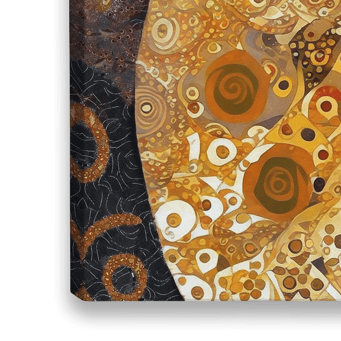 Abstract portret van een mooie kleurrijke poes in Gustav Klimt schilderstijl met goud tinten.