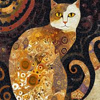 Abstract portret van een mooie kleurrijke poes in Gustav Klimt schilderstijl met goud tinten.