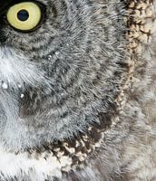 Deel van de kop van een wilde Laplanduil, Strix nebulosa, in Finland.