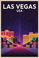 Neonlichten fonkelen in de woestijn, terwijl glinsterende wolkenkrabbers de skyline van Las Vegas kenmerken. Een diepblauwe nachthemel met fonkelende sterren belooft avontuur en plezier. De straten lijken levendig, bruisend van energie en joie de vivre - een uitnodiging voor de magische wereld van casino's en onbegrensde mogelijkheden.