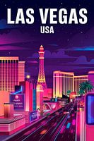 Fantasie en werkelijkheid smelten samen in de pulserende neonlichten van Las Vegas. De glinsterende gebouwen onder een diepblauwe nachthemel stralen een magische sfeer uit. Vooral de iconische Eiffeltoren, kunstig in scène gezet, trekt ieders aandacht. Deze stad gedijt op spannende nachten en ontelbare mogelijkheden, alles is klaar voor een spectaculair avontuur!