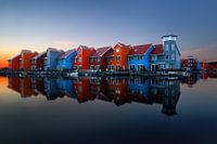 De gekleurde huisjes van Reitdiephaven, Groningen. Ik was hier op een zomer avond en ik had ontzettend geluk met prachtige omstandingheden. Bijna windstil en bijna heldere lucht. De foto maakte ik even na zonsondergang, toen de kleuren blauwig werden en er nog een mooie rode gloed in de lucht hing.