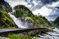 Latefossen is één van de bekendste en mooiste watervallen in Noorwegen. Deze waterval staat pal naast de weg en trekt veel publiek. Het is een schitterend natuurfenomeen en zeker de moeite waard om tijdens de rit te genieten van dit prachtig stukje landschap en het geluid van all die duizenden liters water die de berg af denderen.
