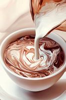 In een zacht kleurenspel creëert het mengsel van chocolade en melk betoverende wervelingen. De delicate witte melk ontmoet het chocoladeoppervlak en creëert een artistiek patroon dat doet denken aan een smaakvolle wervelwind. Een genot voor de zintuigen dat zowel de ogen als het gehemelte betovert!