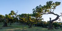 Laurierbomen in het Hütewald Fanal in de vroege ochtend tegenlicht