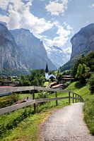 De Werkelijk schitterende valley in het dorp lauterbrunnen in Zwitserland.