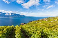 Wijngaard in Rivaz in de Lavaux wijnstreek aan het Meer van Genève in Zwitserland.