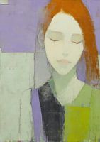 Details: vrouw schilderij, schilderij vrouw, portret schilderij, gezicht schilderij,geslotenogen,kleurvlakken,oranjehaar,minimalistischportret,lavendel,groen,wit,zwart Kleuren:Lavendel,Mintgroen,Chartreuse,Roestoranje,Off-white,Antraciet,Zachtroze,Greige,Taupe,LichtgeelGeslotenogen