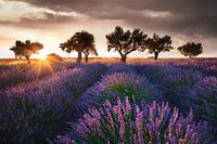 Paarse lavendel en vijf prachtige oude bomen in het zonlicht. Landschap beeld 320244ays