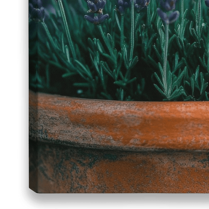 De gratie van lavendel ontvouwt zich in zachte tinten paars en groen in een rustieke terracotta pot. Deze bloeiende schoonheid brengt frisheid en een rustgevende sfeer in elke kamer. Dit kunstwerk staat bijzonder goed in de keuken of slaapkamer, waar het een gevoel van natuur en ontspanning kan overbrengen.