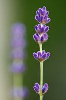 Een foto van twee lavendeltakken.
