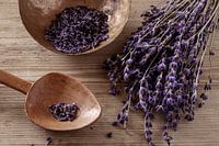 Lavendel met houten lepel op houten achtergrond, studio-opname