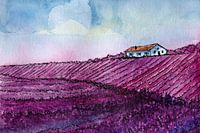 Dit werk is ook verkrijgbaar zonder de zwarte lijntekeningen. Dit werk heet 'Wind door de Lavendelvelden'.