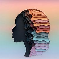 Een eigentijds kunstwerk waarin overlappende texturen en zachte kleuren samenkomen tot een sereen menselijk silhouet. Dit elegante ontwerp straalt rust en verfijning uit, waardoor het een inspirerende en opvallende toevoeging is aan elke woon- of werkruimte. Perfect om een moderne en serene sfeer te creëren.