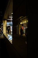 Een doorgang in de wijk Shinjuku in Japan waarin drie aparte beelden te zien zijn.