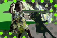 Collage en fotobewerking, kinderportret in groene kleuren.