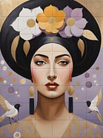 Het portret van Layla uit de serie "Tegelwand Kunst" illustreert de schoonheid, het mysterie en de unieke charme van vrouwen van over de hele wereld. Het unieke idee om elk kunstwerk te laten lijken op een tegelwand voegt een opvallende textuur en diepte toe die de individuele schoonheid van elk model extra benadrukt. Deze stijl zorgt ervoor dat elk portret echt in het oog springt en trekt de aandacht als een visueel middelpunt in elke ruimte. Het nodigt uit om langer te kijken en de verhalen achter de mysterieuze blikken en elegante poses te ontdekken. Elk portret is opvallend in kleur en uitstraling, fris en illustratief, versierd met bloemen, vogels en abstracte vormen, perfect voor iedereen die een vleugje internationale elegantie aan hun omgeving wil toevoegen.