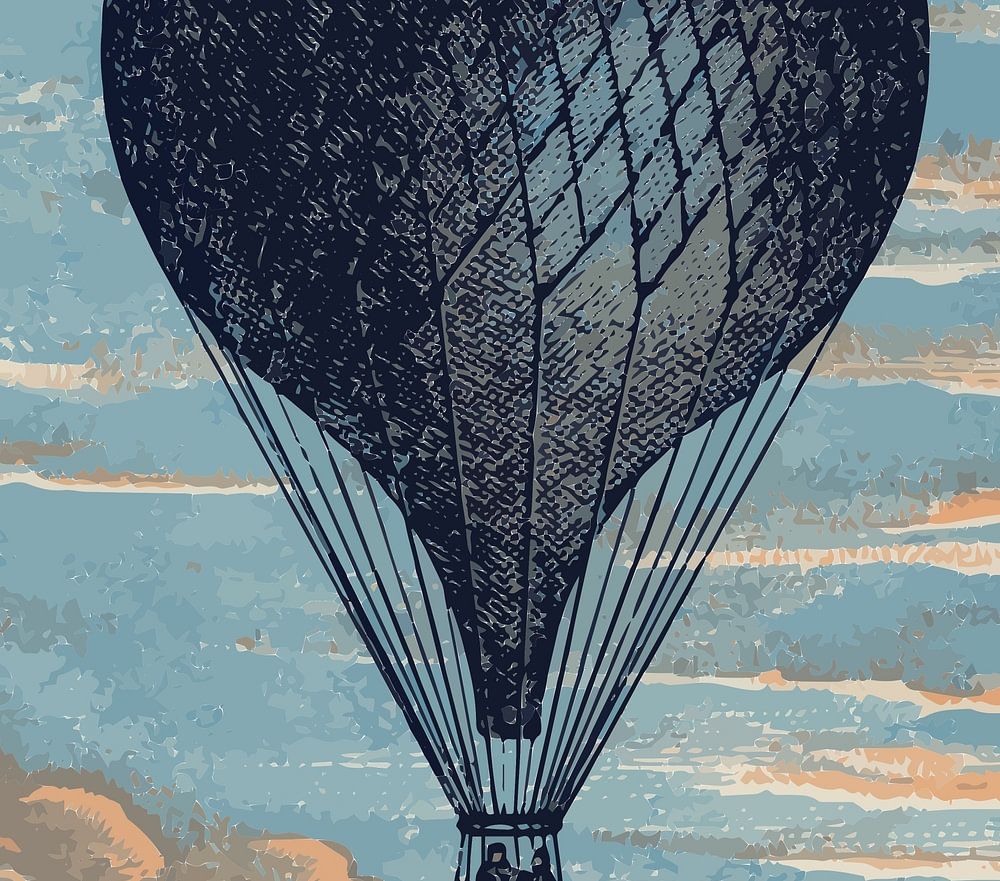 De Ballon door Imprimeur E. Pichot. Origineel uit Library of Congress. Deze versie is iets glad gestreken. Wijkt dus wat af van het origineel.