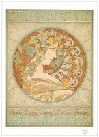 Alfons Maria Mucha, internationaal bekend als Alphonse Mucha, was een Tsjechische schilder, illustrator en graficus die tijdens de Art Nouveau periode in Parijs woonde en vooral bekend is om zijn uitgesproken gestileerde en decoratieve theateraffiches, met name die van Sarah Bernhardt. Hij maakte illustraties, advertenties, decoratieve panelen en ontwerpen die de beroemdste afbeeldingen van die periode werden.