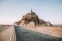 Op deze foto zie je de iconische Mont Saint Michel en de loopbrug waarmee het eiland met het vasteland wordt verbonden. Over het algemeen is het hier heel erg druk, maar op het moment van deze foto zijn er verrassend weinig mensen.