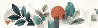 Details: bladeren, schilderij, oranje, groen, minimalistisch, natuur, cirkel, kunst, modern, geometrisch