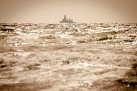 Nederlands Fregat vertrekt uit Den Helder... gezien vanaf het strand..
