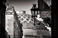Een zwart-wit impressie van de oude stad van Lecce in Apulië, Zuid-Italië.