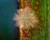 een luchtfoto van een boom langs de maas in Hoenzadriel, Gelderland.