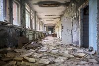 Een van de gangen in verlaten school in Pripjat
