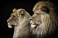 Portret foto van een leeuw en een leeuwin samen