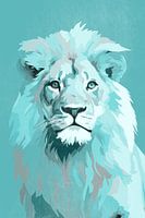Leeuw in Blauwgroen is een illustratie van een elegante leeuw met een grungy blauwgroene achtergrond. Met de prachtige warme kleuren en een mooi contrast is dit echt een eye catcher.