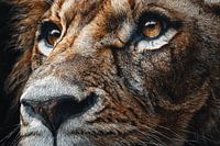 Leeuw in Intieme Blik Realisme en Emotie in Detail van Eva Lee