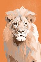 Leeuw in Oranje is een illustratie van een elegante leeuw met een grungy oranje achtergrond. Met de prachtige warme kleuren en een mooi contrast is dit echt een eye catcher.
