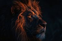 Koop dit leeuwen kunstwerk Leeuw in Schemerlicht met Gouden Manen van Art & Soul Creations op canvas, aluminium dibond, (ingelijste) fotoprint, behang en ArtFrame, op maat geprint in Fine-Art kwaliteit.