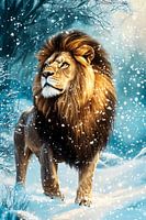 Dit ontwerp toont een prachtige leeuw in een serene winterse omgeving. De realistische details van de leeuw gecombineerd met het zachte, glinsterende sneeuwlandschap creëren een beeld dat kracht en rust uitstraalt. Perfect voor in een woonkamer of kantoor, dit kunstwerk brengt een vleugje natuur en elegantie in je interieur. De warme kleuren van de leeuw contrasteren mooi met het koude blauw van de sneeuw en lucht, wat zorgt voor een unieke dynamiek. Een geweldig stuk voor liefhebbers van dieren en natuur.