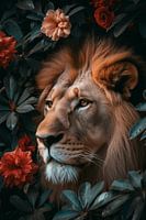 "Leeuw in de alle glorie" is een indrukwekkend kunstwerk waarbij de koning der dieren wordt omhuld door een rijkdom aan bloeiende bloemen. De diepe blik in de ogen van de leeuw contrasteert prachtig met de zachte bloemen die hem omringen, een spel tussen kracht en kwetsbaarheid. De intense kleuren van de bloemen, van zachte perzik tot…