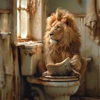 Leeuw leest een krant op het toilet - Humoristische toiletposter van Poster Art Shop